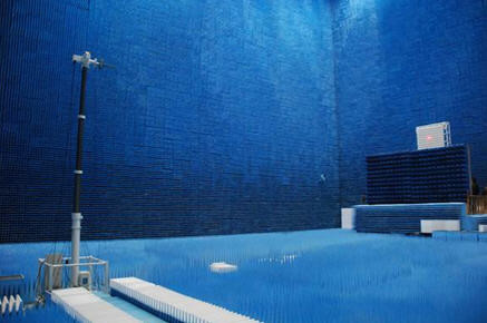 The anechoic chamber is mainly used to simulate free space environment for EMC testing, and it can effectively eliminate external electromagnetic interference and a variety of reflective interference. Such 5m EMC anechoic chamber, can used to accomplish the standard 1m-distance test as MIL-STD-461F, GJB151/152A, and 5m EMC standard test for civil electronic and electrical products as civil standards GB9254-1998, GB/T 17626.3-1998.