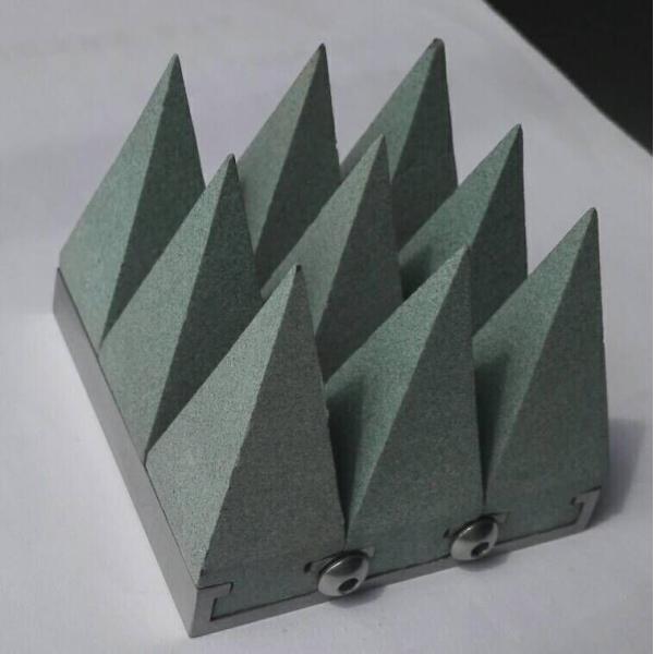 Super High-power silicon carbide pyramid absorbing material is a kind of inorganic sintered materials, resistant to strong power, commonly used in high power absorbing box and comprehensive test for high power airborne antenna, power resistance no less than 30 kw/m2, easy install with a metal T card slot and with high reliability.